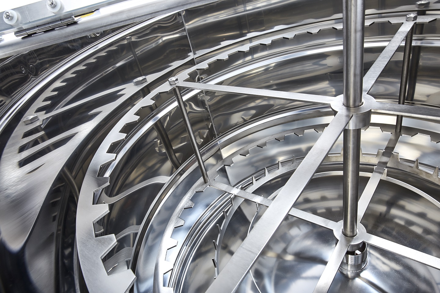 The frames are all positioned in the direction of the central axis and do not need to be turned. The honey extractor thus ensures complete emptying of the honeycombs without changing the honeycombs in their orientation.