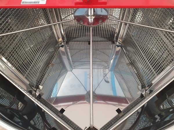 Suitable for:• 4 deep frames (side bar up to 28 cm) / 8 shallow frames (side bar up to 14 cm)• frame sizes: Zander, German Standard, Langstroth, Freudenstein, Gerstung, KuntzschTechnical details:• top drive with safety device • motor 110 W / 230 V• hinged acrylic glass lid halfs• tank inner-Ø 50 cm• grid area of the comb cage 29 x 46 cm• without middle axis (frames can be turned inside the cage)• stainless steel• total height 116 cmWeight with/without wrapping: 28 kg / 23 kgWrapping: cardboard boxChargeable weight: 38 KGSpare parts and accessories:Item no. 6000070 Ball for bearingItem no. 6000061 Rubber feetItem no. 6000074 Food lubricant grease for bottom bearing 20gItem no. 23045001 Sealant for bottom bearingItem no. 5002943 4-frames tangetial cageAcrylic glass lid half on request